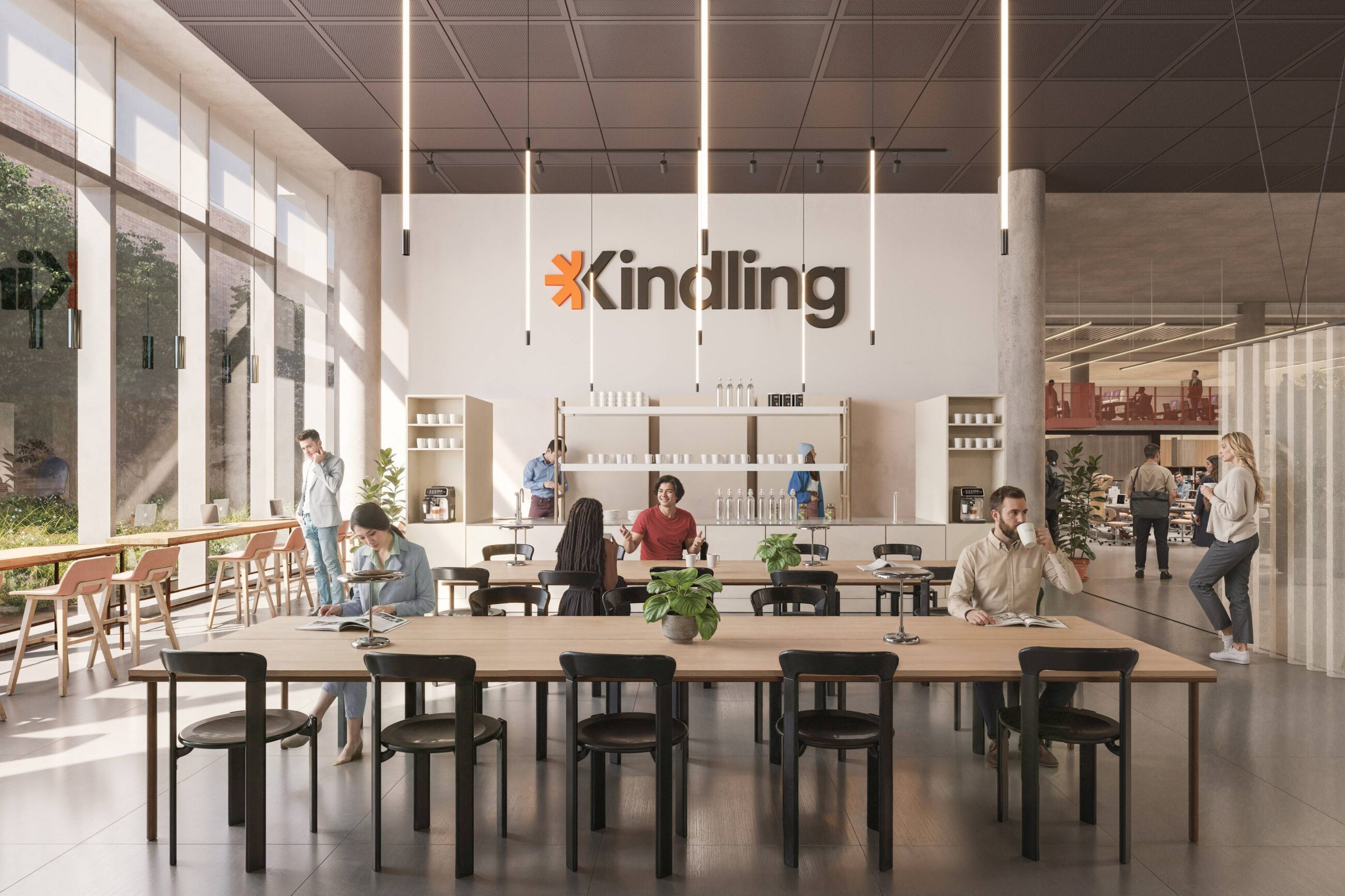 Kindling members will benefit from a complimentary onsite barista, a dedicated community team, generous breakout spaces, stocked kitchens, a programme of curated events and flexible membership options.